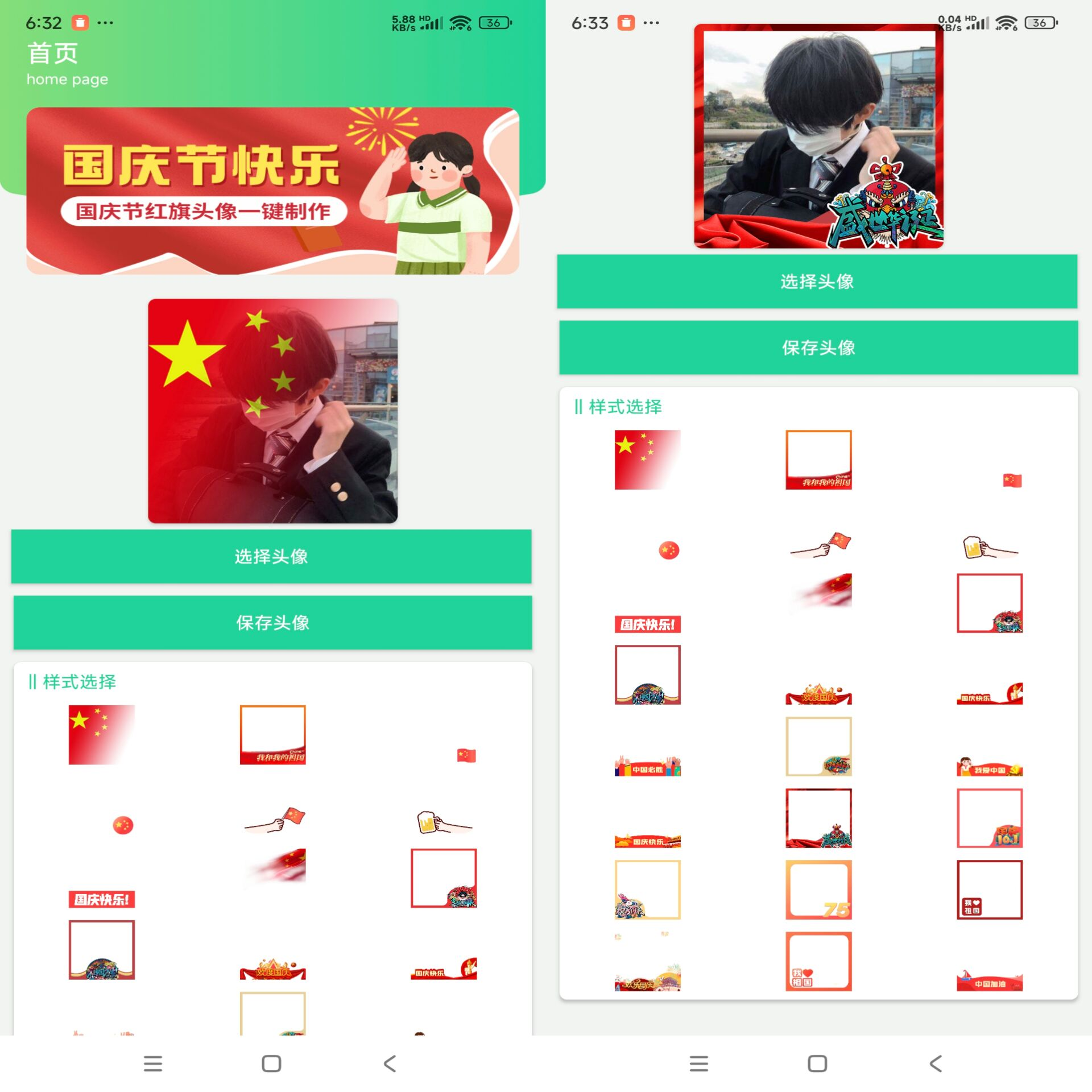 一款可以帮助你制作漂亮的国庆头像,让你的头像与众不同,同时也以自己的方式为祖国庆典出一份力,在这款App中可以制作各种各样的国庆头像,快来给你的头像也换上吧。