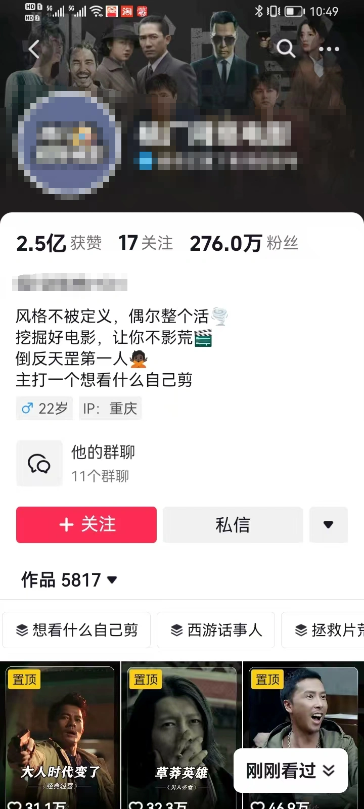 这个赛道目前流量非常好,新号一个多月涨粉77万,条条都是爆款,这种作品非常具有趣味性,利用AI魔改影视内容和配音,是新型的影视搞笑赛道,学会过后起号或者是涨粉都非常不错,目前做的人还不多,属于是蓝海阶段,大家学会过后可以实操起来!