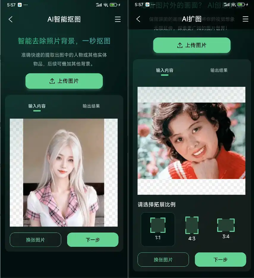 一款集成了多种AI图片处理功能的强大工具,还是完全免费且无广告的!它的界面简洁清爽,操作简单易用,就算你是个图片处理新手,也能轻松上手。它提供了包括AI重绘、内容替换、照片变活、AI内容擦除、AI抠图、艺术风格重塑、AI扩图、图像高清还原和老照片上色等在内的多项功能。
