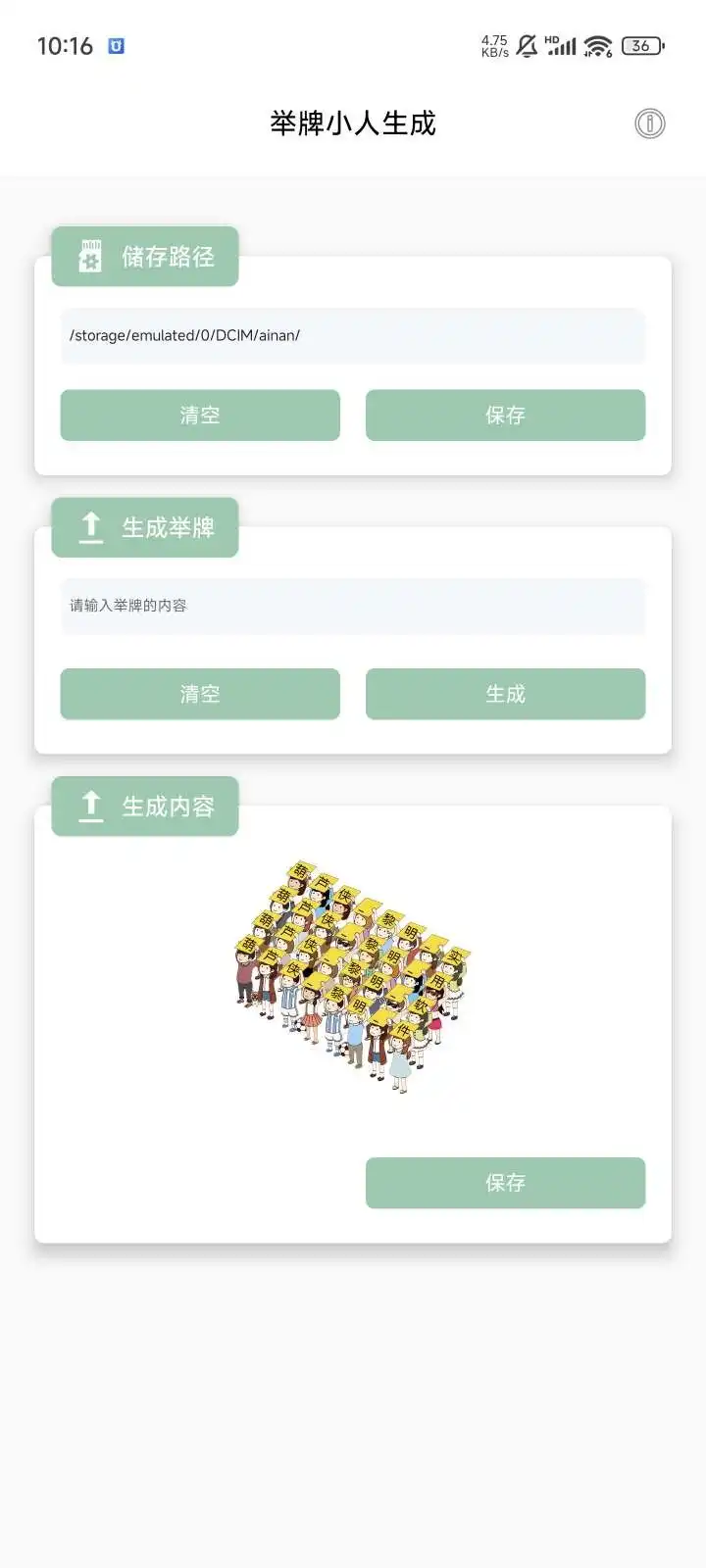本软件可以讲文本内容生成举牌小人,每行最大显示8个,多出的自动换行,看起来很可爱,也比较有趣。生成的图片用来做素材是个不错的选择!