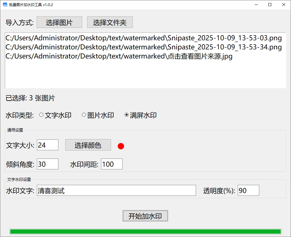 - 支持单张、批量文件夹内图片批量添加水印