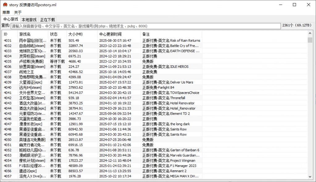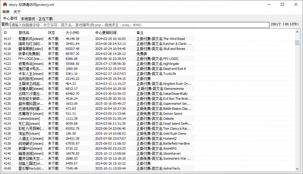 • 软件支持通过中英文名称和游戏编号进行搜索游戏