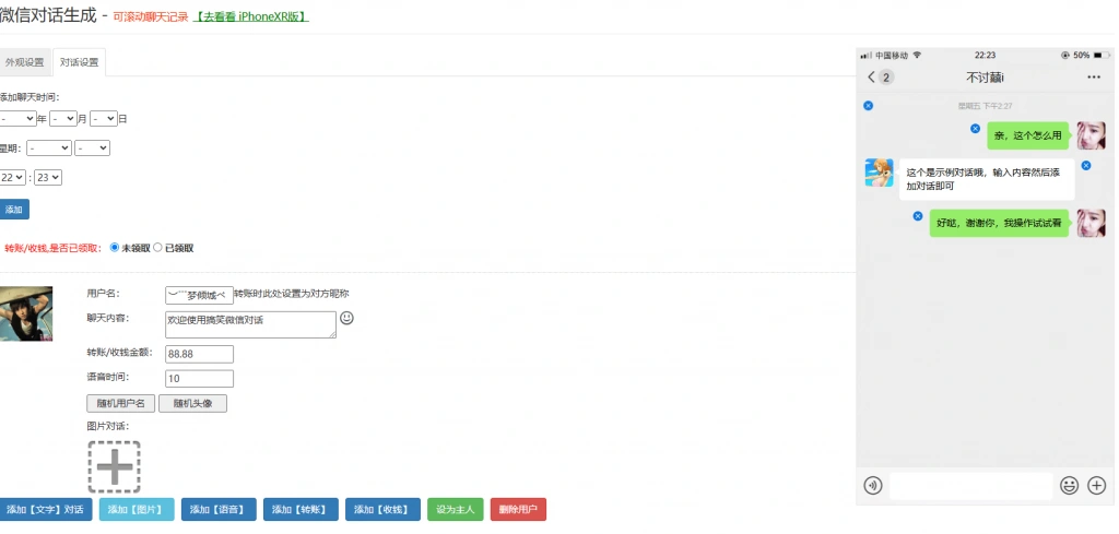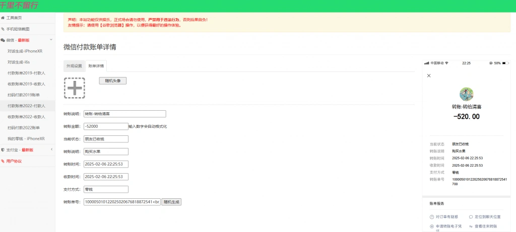 • 微信和支付宝截图生成工具,支持聊天记录、收付款账单、扫码付款、零钱、余额、商品付款等