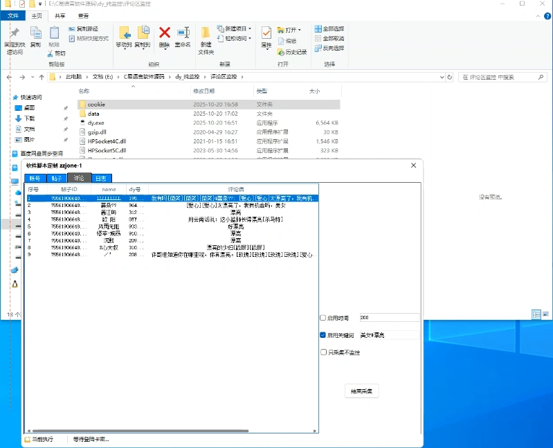 - 一款监控抖音评论区关键词监控的多线程软件,指定视频有对应关键词回复后,会把用户名片推送给自己的账号